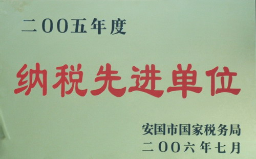2006年7月,我公司被安國市國家稅務(wù)局認(rèn)定為2005年度納稅先進(jìn)單位。
