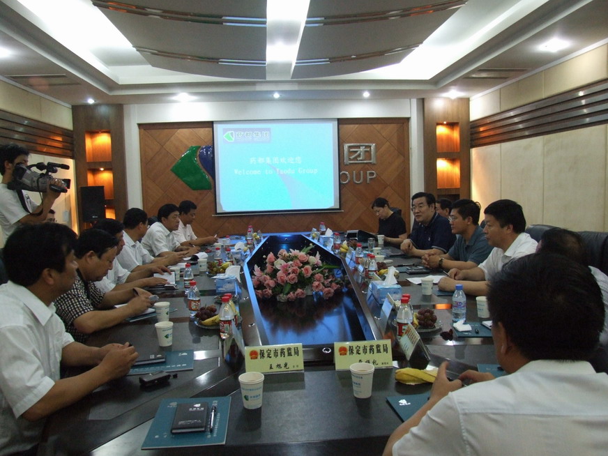 2008年7月19日,河北省食品藥品監(jiān)管局局長高金浩、副局長趙瑜帶領省局有關業(yè)務處領導在保定市副市長孟祥偉、保定市藥監(jiān)局局長徐順通及相關副局長及安國市市長張賀良、副市長張彥安等安國市相關部門領導的陪同下,來我公司進行調(diào)研工作。公司董事長李曉恩、李玲副總、邢志莊總工、董少杰副總等公司領導在辦公樓前熱情的迎接了省局領導,并陪同高金浩局長一行分別參觀了產(chǎn)品展廳、中藥材標本室和化驗室。在公司小會議室,高金浩局長一行觀看了我公司制作的企業(yè)簡介、中藥材標準化種植、新藥研發(fā)、藥都集團北泡工業(yè)園區(qū)項目建設情況等幻燈片,在此基礎上,李曉恩董事長就公司發(fā)展的整體情況作了全面系統(tǒng)的匯報,并圍繞項目建設及產(chǎn)業(yè)政策談了自己的看法,張彥安副市長代表安國市政府匯報了安國藥業(yè)發(fā)展的情況。圍繞張彥安副市長和李曉恩董事長的匯報,與會人員紛紛發(fā)表了自己的意見,在與會人員發(fā)表意見的基礎上,高金浩局長作了總結性發(fā)言,并就藥都集團發(fā)展方向提出了原則性意見,具有較強的前瞻性和指導性。